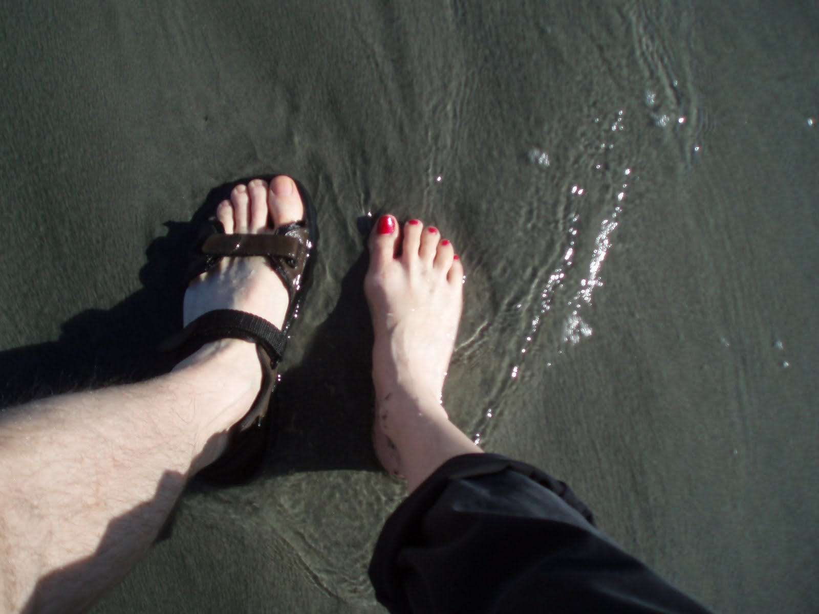 Wading to get to a sandy island. Then wading back again as the tide washed over the sand.