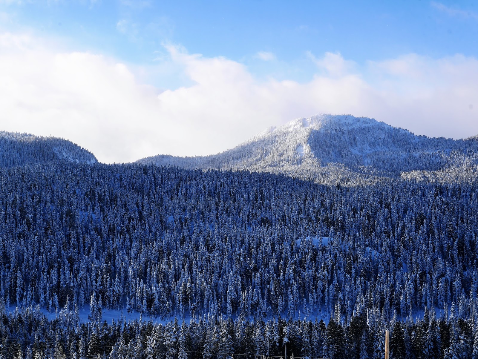 Then we moved here, to southern Vancouver Island, where it snows very little, if at all. And I longed for snow. I still do, every year, and am thrilled when it comes, for I know that it won't last long at all. This year we've had snow here at sea level and we knew there would be a lot on the mountain. There was.