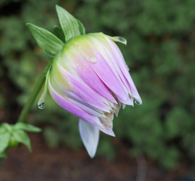 One more dahlia blossom is slowly, ever so slowly, opening. It's a dinner plate variety, and I don't know the name, but I'm watching it carefully.